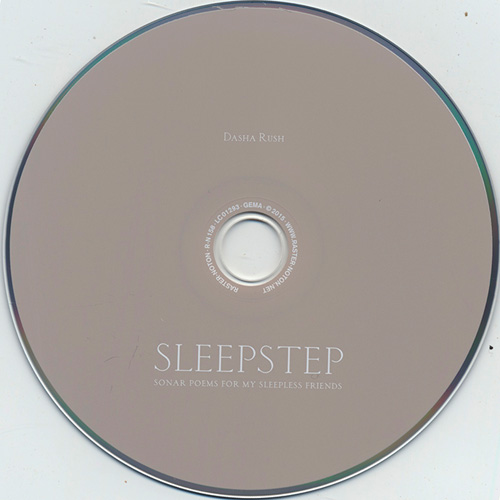 ラスターノトンからリリースされたDasha Rush の " Sleepstep - Sonar Poems For My Sleepless Friends " は「 私の眠れない友人のためのソナー ( 水中音波探知装置 ) 詩 、および電子的に疎外されたマイクロ混合物とサウンドのコラージュ、 夢似の大気を作成する時の目的を通しての旅行、シュールレアリスム的な短編小説のようなもの 」。音楽的にはアンビエント・ミュージックの伝統に立った作品で、そのイメージは彼女の写真と彼女によって書かれた詩を含む32ページの小冊子によって解き明かされる。ロシアアクセントを持つキュートな声は、リモートのシンセサイザーサウンドスケープの上を漂い、女の子ならではの聴く者を抱きしめるかのような暖かく神秘的でシュールな詩が語られる。エレガントで旋律的な深い悲しさはこころ打たれる。Dasha Rushはロシア出身のプロデューサー、アーティスト、ダンサー、テクノDJ。ロシアに1995年まで住み、1996年1月、16歳の時にモデルの仕事をするためにパリへ移住、その後各地を転々とロンドンや日本にも住んでいる。まさに国際人。2005年以降、自身のレーベルFullpandaとHunger to Createで実験的テクノ/アンビエントの作品をリリース、これまでに2枚のアルバムと数枚のEPなどをリリースし、テクノとインダストリアル、エクスペリメンタルとアンビエントを横断する。彼女もまたアートムーヴメントとしての、マシンと人の夢によって織られた新ロマンティシズムの同時代音楽=コンテンポラリーモダンミュージックを表現する。
